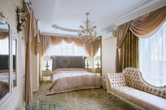 Установлена система кондиционирования для поддержания комфортного микроклимата круглый год. Итальянская мебель, люстры и элементы декора придают интерьеру элегантность, а мебель из массива ценных пород дерева подчеркивает вкус и статус.