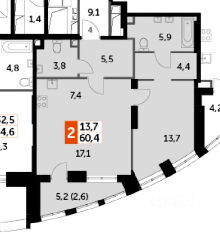 -Площадь квартиры: 60,4 кв.м