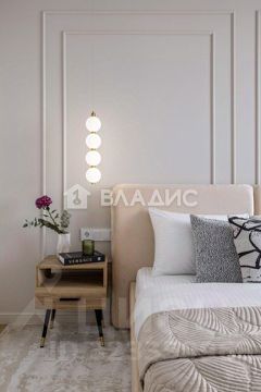 Интерьер, выполненный в мягкой кремово-бежевой цветовой палитре, подчеркнутый натуральным деревянным покрытием и мягкими фактурами.
