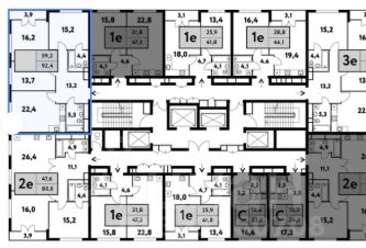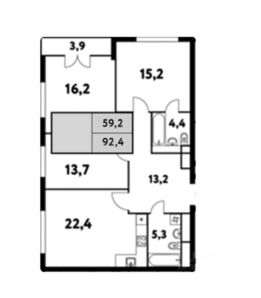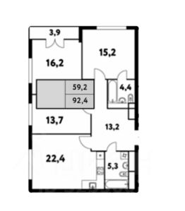 Квартира встречает просторным холлом 13,2 кв.м, большая кухня-гостиная 22,4 кв.м. Три спальни: 13,7 кв.м, 16,2 кв.м с окном и лоджией 3,9 кв.м и мастер-блок 15,6 кв.м с собственной ванной комнатой с с/у 4,4 кв.м и отдельная ванная комната с с/у 5,3 кв.м. Благодаря высокому этажу вид открывается на панораму города и ничто его не перегораживает. Окна выходят на Север и на Восток.