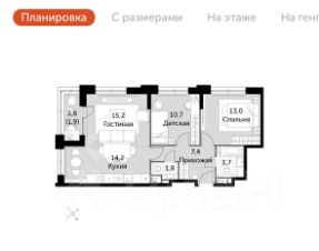 Площадь квартиры 67,2 кв.м. Высота потолков 3 метра. Центральное кондиционирование и вентиляция. Подземный паркинг. Система умный дом. Закрытый двор внутри корпусов.