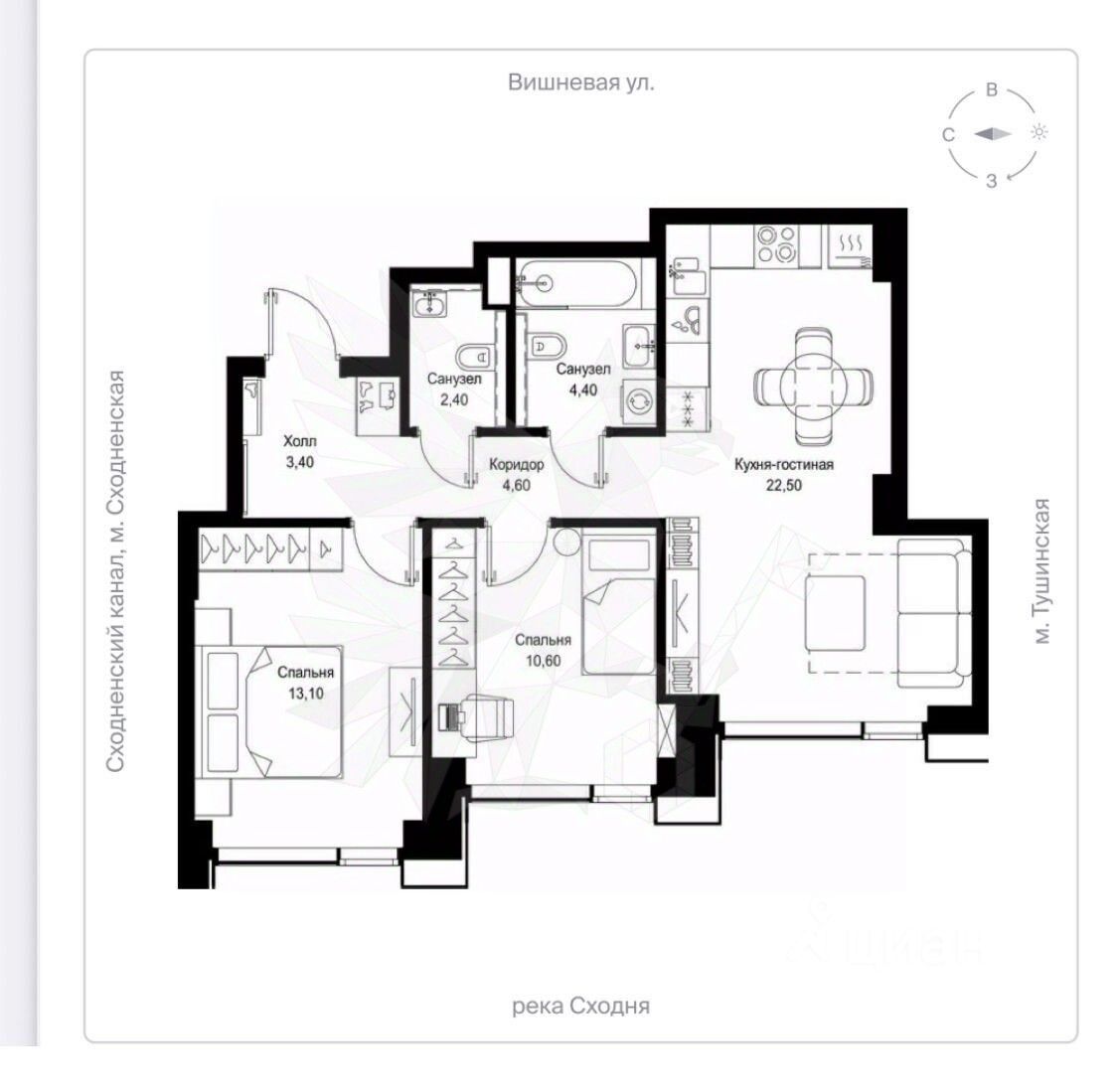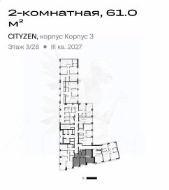Продается 2-комнатная квартира в жилом мультиквартале CITYZEN на 2-м этаже в корпусе #3 с видом на прогулочный зеленый бульвар. Общая площадь лота составляет 61 м².