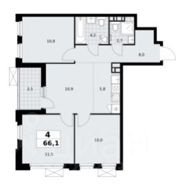 Квартира общей площадью 66,2 м2, продаётся без ремонта!