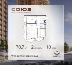 Продаётся 2-комнатная квартира площадью 70.7 м² на 10 этаже в Жилом Комплексе "Союз".
