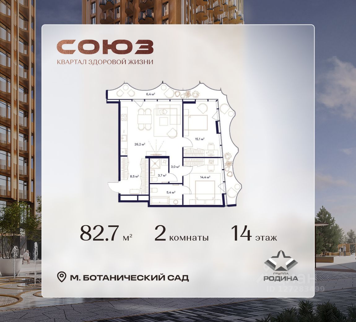 Продаётся 2-комнатная квартира площадью 82.7 м² на 14 этаже в Жилом Комплексе "Союз".