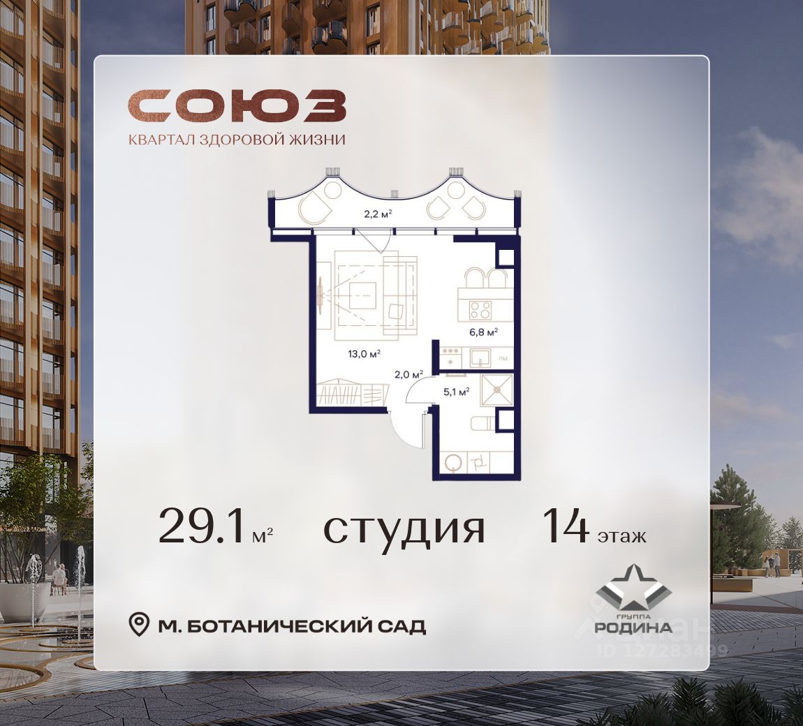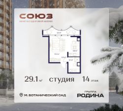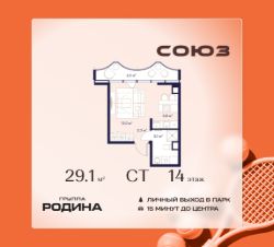 Продаётся квартира-студия площадью 29.1 м² на 14 этаже в Жилом Комплексе "Союз".
