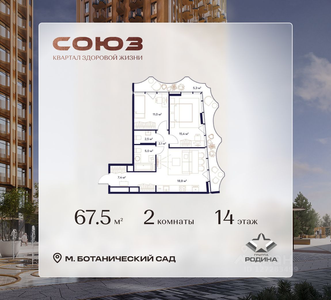 Продаётся 2-комнатная квартира площадью 67.5 м² на 14 этаже в Жилом Комплексе "Союз".