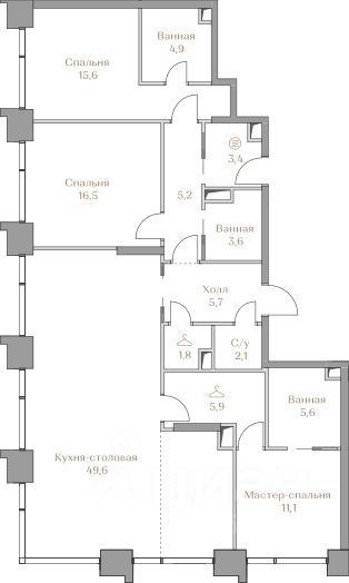 В клубном доме Waterfront 2 проекта Luzhniki Collection в Хамовниках продаётся коллекционная премиальная квартира с 3 спальнями площадью 131 м2 на 17 этаже.
