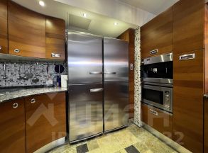 В кухню встроена качественная мебель и техника Miele: варочная панель, духовой шкаф, вытяжка, посудомоечная машина, трехкамерный холодильник с винным шкафом. Столешница сделана из гранита.