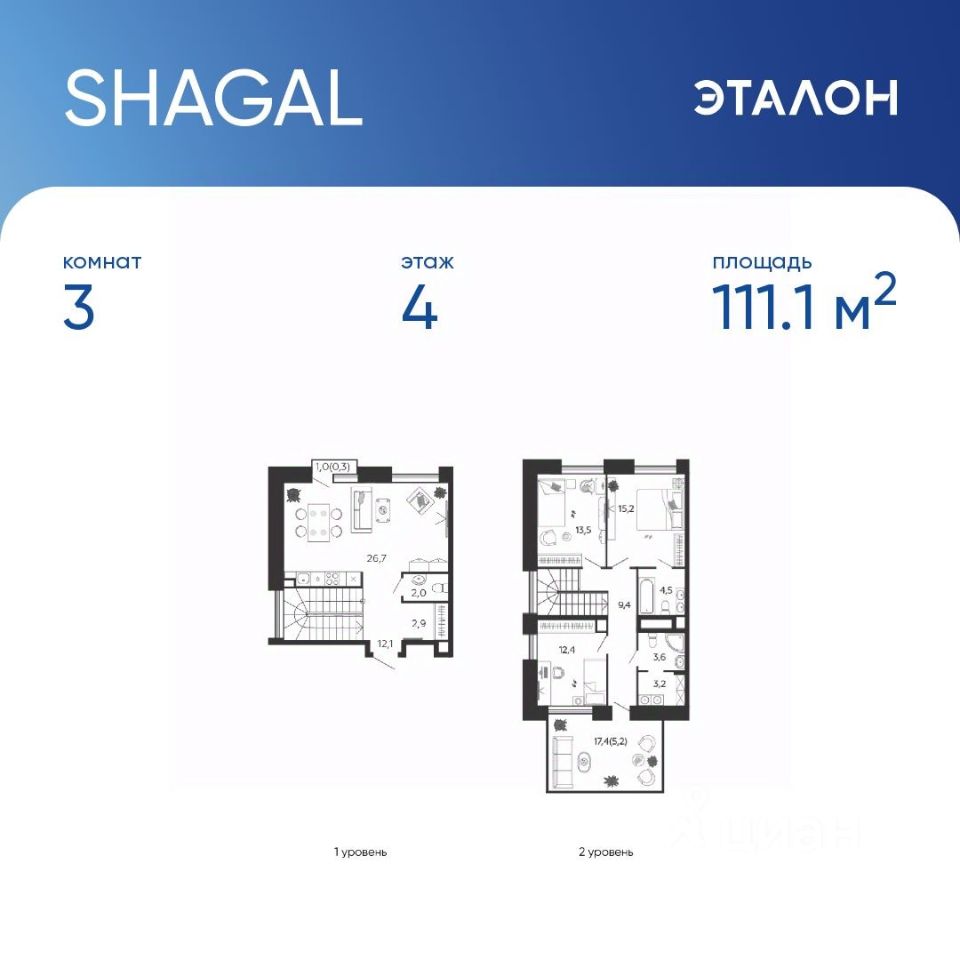 Общая площадь квартиры — 111.1 кв. м, этаж 4 из 12.