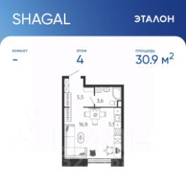Общая площадь квартиры — 30.9 кв. м, этаж 4 из 12.