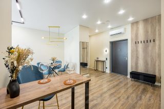 Шикарная двухкомнатная квартира евроформат ( большая кухня-гостинная и спальня). Идеальный ремонт, всть все необходимое (стиральная машина, посудомоечная машина, холодильник, кондиционеры), современная мебель, много места для хранения (огромная гардеробная и вместительные шкафы в прихожей).