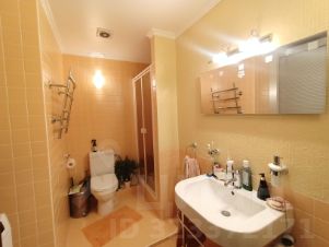 — В санузле — встроенная душевая кабина и стиральная машина.