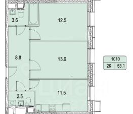 Функциональная планировка: две комнаты, два санузла, вид на улицу. Без отделки.
