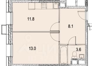 Функциональная планировка: две комнаты, два санузла, вид на улицу. Без отделки.