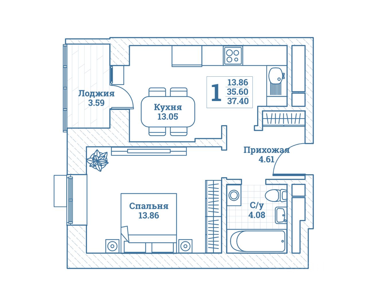 Общая площадь37,4 м²