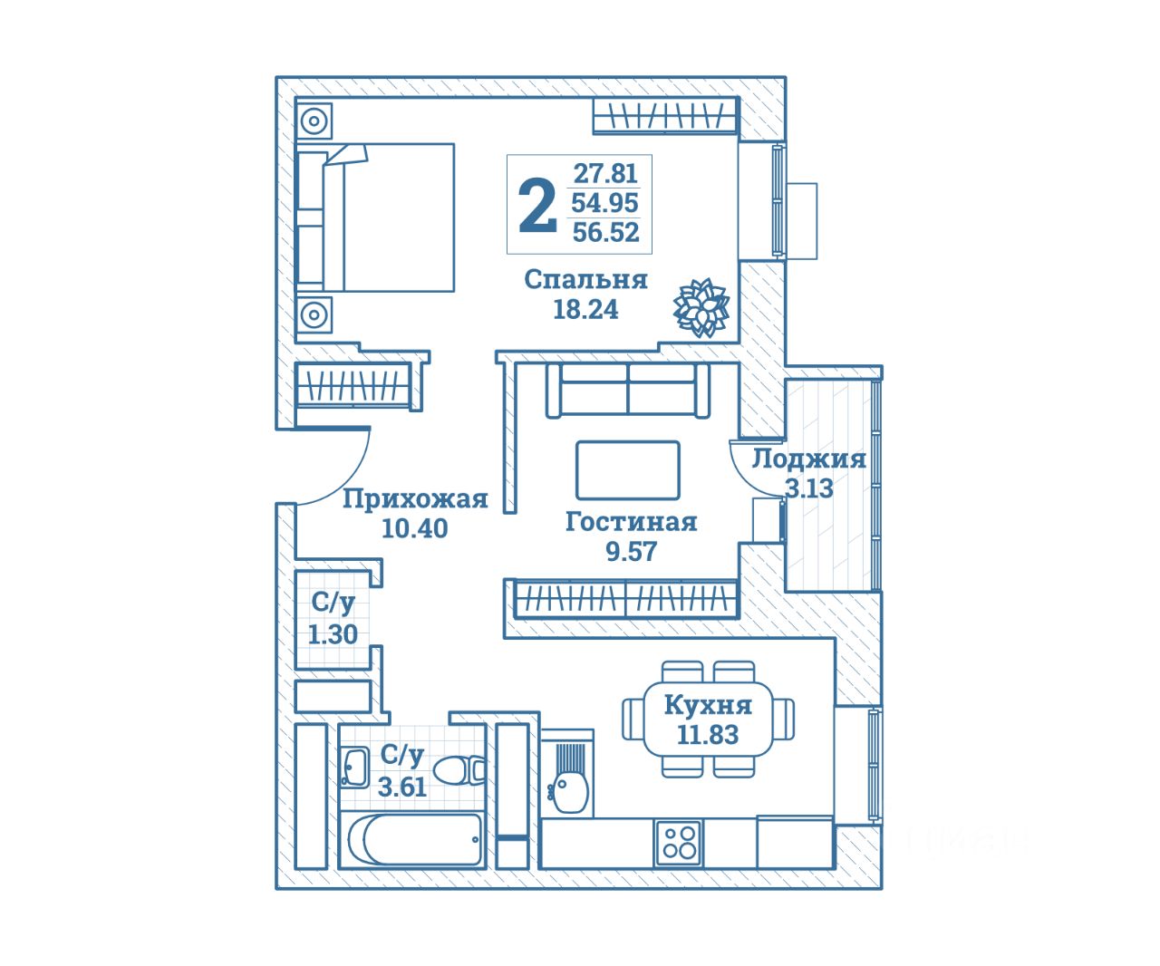 Общая площадь56,52 м²