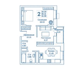 Общая площадь56,88 м²