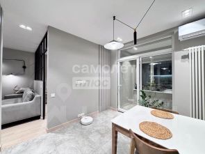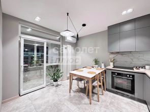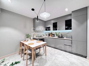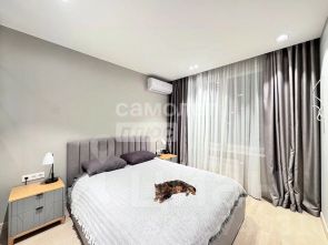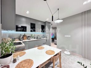 Произведено разделение квартиры на функциональные зоны: спальню, гостиную, рабочую зону на лоджии, гардеробную, просторную кухню и совмещенный санузел. Ремонт осуществлен с нуля для себя, переделаны и заменены все инженерные коммуникации от застройщика. Полностью заменена вся разводка по электрике и сантехнике (сантехника полностью на родном Rehau), при этом все коммуникации менялись от общего щитка и стояка в коридоре на этаже. Смонтирована коллекторная группа системы отопления и водоснабжения, установлена система защиты от протечек Нептун. Отделка выполнена в спокойных, светлых тонах, с применением качественных материалов, покраска стен пульверизатором (краскопультом). Потолок выполнен из гипсокартона. Вся плитка в квартире Italon (керамогранит), напольное покрытие в спальне и гостиной паркетная доска (дуб). Выделено отдельное помещение под гардеробную, смонтирован встроенный шкаф в прихожей. Большое количество розеток (Legrand), 3 слаботочные розетки (интернет-кабель).