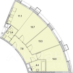 Функциональная планировка: две комнаты, два санузла, вид на улицу. Без отделки.