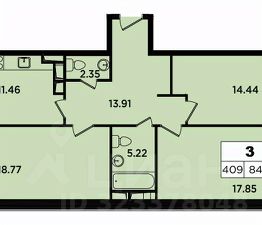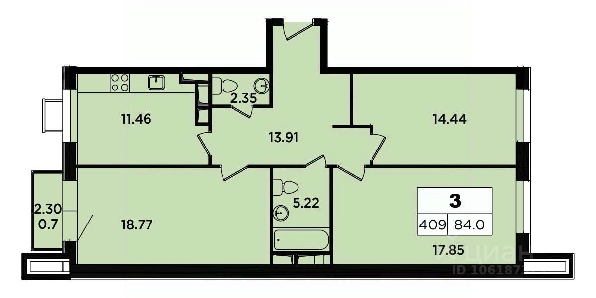 Квартира располагается на 13 этаже 17-этажного монолитного дома в ЖК Апарт-комплекс Легендарный квартал 2023 года постройки. Просторные апартаменты с окнами на две стороны света. Три изолированные комнаты, общая площадь 84,0 м2. Без отделки. Лот 2-409.