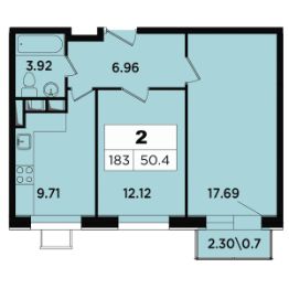 Состав: 2 комнаты, 12 и 17 кв. м, просторная кухня 9,7 м2, совмещённый с/у, просторный холл 7 м2, балкон 2,3 м2. 9 этаж — много света и отличные виды.