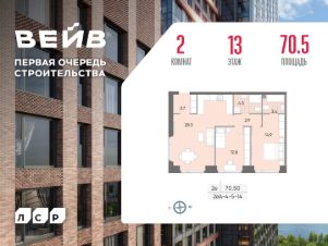 Продается 2-комнатная квартира общей площадью 70.5 кв. метров на 13 этаже жилого комплекса ВЕЙВ. Комплекс располагается на юге Москвы в районе Москворечье-Сабурово. В пешей доступности расположены станция МЦД "Москворечье" и станция метро "Борисово". Для автомобилистов есть удобное сообщение с Каширским шоссе.