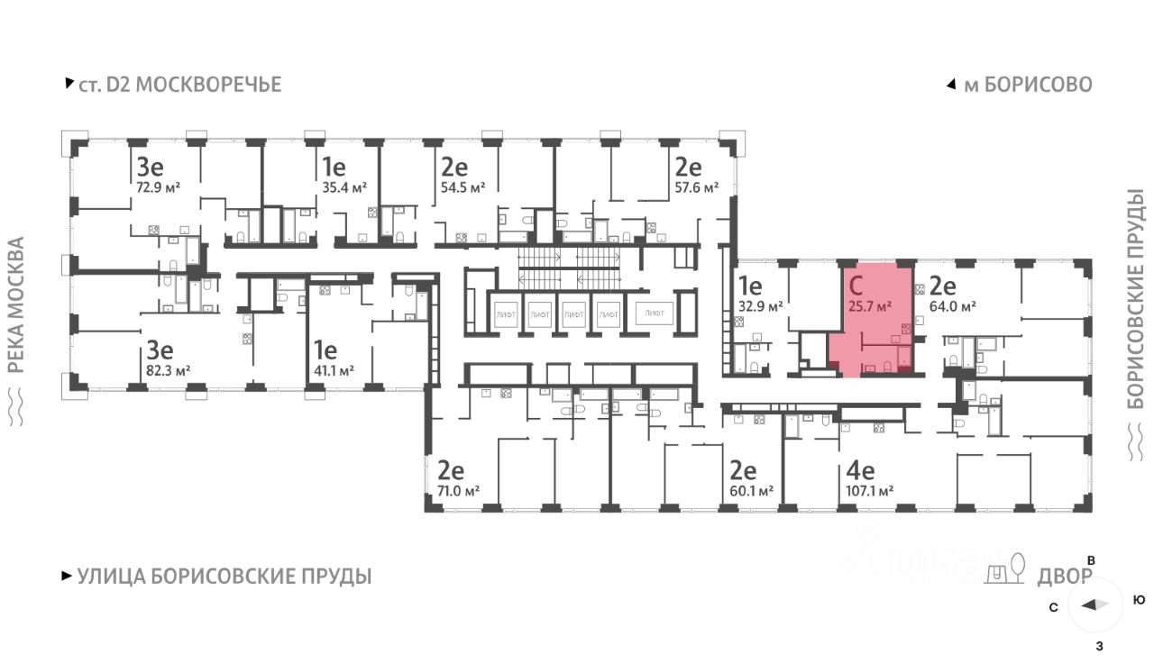 Продается квартира-студия общей площадью 25.7 кв. метров на 32 этаже жилого комплекса ВЕЙВ. Комплекс располагается на юге Москвы в районе Москворечье-Сабурово. В пешей доступности расположены станция МЦД "Москворечье" и станция метро "Борисово". Для автомобилистов есть удобное сообщение с Каширским шоссе.