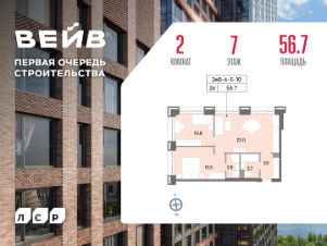 Продается 2-комнатная квартира общей площадью 56.7 кв. метров на 7 этаже жилого комплекса ВЕЙВ. Комплекс располагается на юге Москвы в районе Москворечье-Сабурово. В пешей доступности расположены станция МЦД "Москворечье" и станция метро "Борисово". Для автомобилистов есть удобное сообщение с Каширским шоссе.