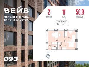 Продается 2-комнатная квартира общей площадью 56.9 кв. метров на 11 этаже жилого комплекса ВЕЙВ. Комплекс располагается на юге Москвы в районе Москворечье-Сабурово. В пешей доступности расположены станция МЦД "Москворечье" и станция метро "Борисово". Для автомобилистов есть удобное сообщение с Каширским шоссе.