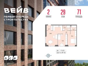 Продается 2-комнатная квартира общей площадью 71 кв. метров на 29 этаже жилого комплекса ВЕЙВ. Комплекс располагается на юге Москвы в районе Москворечье-Сабурово. В пешей доступности расположены станция МЦД "Москворечье" и станция метро "Борисово". Для автомобилистов есть удобное сообщение с Каширским шоссе.