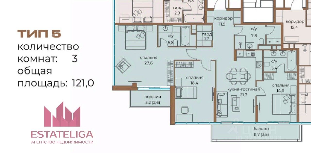 Id 57756. Шикарная планировка в премиум корпусе!!!