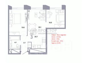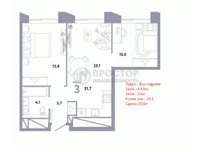 -Общая площадь 51,8 кв.м.