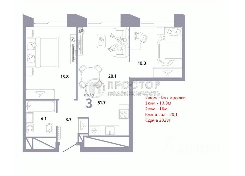 -ПЕРЕУСТУПКА -Ключи в 1 кв. 2028г.