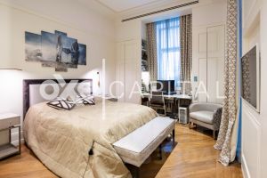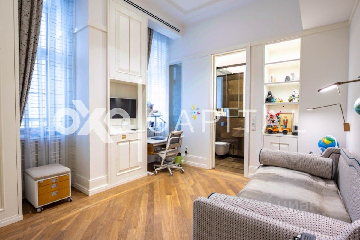 Прекрасные виды центра Москвы украшение трехкомнатной квартиры площадью 183,4 квадратных метра. Достаточно распахнуть окно, чтобы увидеть восхитительное представление: сияющий в закатных лучах Храм Христа Спасителя и здание МИД. В собственности имеются 2 подземных паркинга.