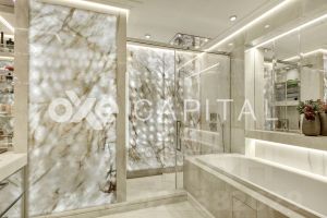 • Отделка выполнена по индивидуальному проекту с использованием натуральных материалов ( ценные породы дерева, мрамор, оникс), современные инженерные решения ( Очистка воды и воздуха) . Квартира полностью меблирована и оснащена качественной бытовой техникой ( Miele).