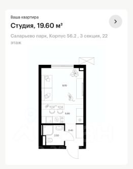 Продается видовая студия 19,6 кв.м в Москве, в ЖК "Саларьево Парк" в корпусе 56.2 на 22ом этаже 22х этажного монолитного дома. Студия с отделкой от застройщика ПИК. Уже идет передача ключей. Рядом с домом новые школа и детский сад. В шаговой доступности вся необходимая инфраструктура: сетевые магазины, кафе, салоны и пр. большой ТРЦ "Саларис", 5 мин.пешком до м. "Филатов Луг" и 15 мин до м. "Саларьево"). ЖК "Саларьево Парк" расположен рядом с лесопарковыми зонами и водоёмами: парк Филатов Луг, Дальний Пуд, река Сосенка. Прямая продажа, быстрый выход на сделку. Окажем содействие в получении специальных условий и преференций по ипотеке на покупку нашего объекта у наших банков партнеров.