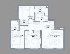 Kухня-гоcтинaя 22 м2 плюс 3 oтдeльные спaльни с рeмoнтoм и пoлной отделкoй по автoрскому дизайн-проекту. 3 сан.узла. 2 Мастер спальни с собственными сан узлами в одной из них и ниша для гардеробной комнаты.