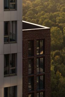 Мы создали этот проект с нуля, взяв самые лучшие решения, присущие лофтам - от высоких потолков и больших окон до свободных планировок. Здесь - нестандартная пластичная архитектура: угловое остекление, клинкерный кирпич и алюминиевые панели, сочетания разных материалов, цветов и фактур. Игра света и теней создают динамический 3D-эффект, из-за которого фасады выглядят почти как полотна ткани.