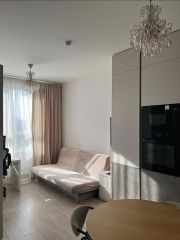 Свободная продажа, полная стоимость. Продаётся евродвушка, в доме класса Бизнес+, с ремонтом и мебелью, полностью готова к заселению. Мебель дорогая и качественная, с практически нулевой амортизацией. В каждой комнате кондиционеры. Красивый панорамный вид на мегаполис. Современный ландшафтный дизайн дворовых территорий, внутри комплекса большая парковая зона, очень много пространства для прогулок и отдыха, беговые и велодорожки, креативные зоны отдыха, освещение, и т.д., всё на высоком уровне. Комплекс сильно накачен абсолютно всей инфраструктурой: школы, сады, магазины разных спектров, ПВЗ, банки, аптеки, кафе, кофейни, рестораны, фитнес, и т.д. Не самая плохая ситуация с парковками, даже ночью можно найти место. Для ценителей авто-комфорта, много предложений по аренде подземного паркинга, в паркинг спускается лифт. Две ветки метро, 7 и 9 мин. пешком.