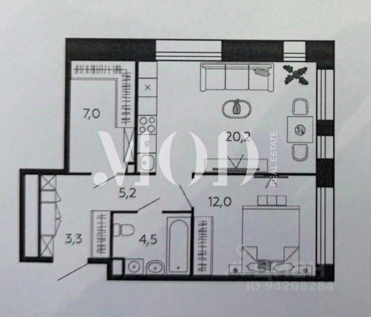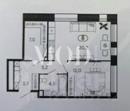 Функциональная планировка предполагает: кухню-столовую 21 кв.м, спальню 12 кв.м., совмещенный санузел, просторную гардеробную 7 кв.м., коридор.