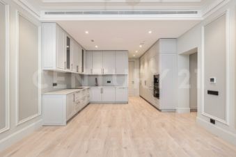 Интерьер выполнен в стиле современной неоклассики — благородные линии, светлые тона и продуманная геометрия создают ощущение лёгкости и комфорта.