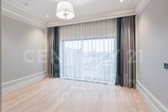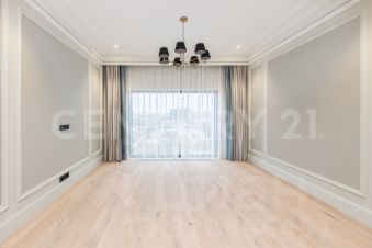 Высокие потолки 3.2 м усиливают чувство простора, а панорамные окна наполняют квартиру мягким дневным светом.