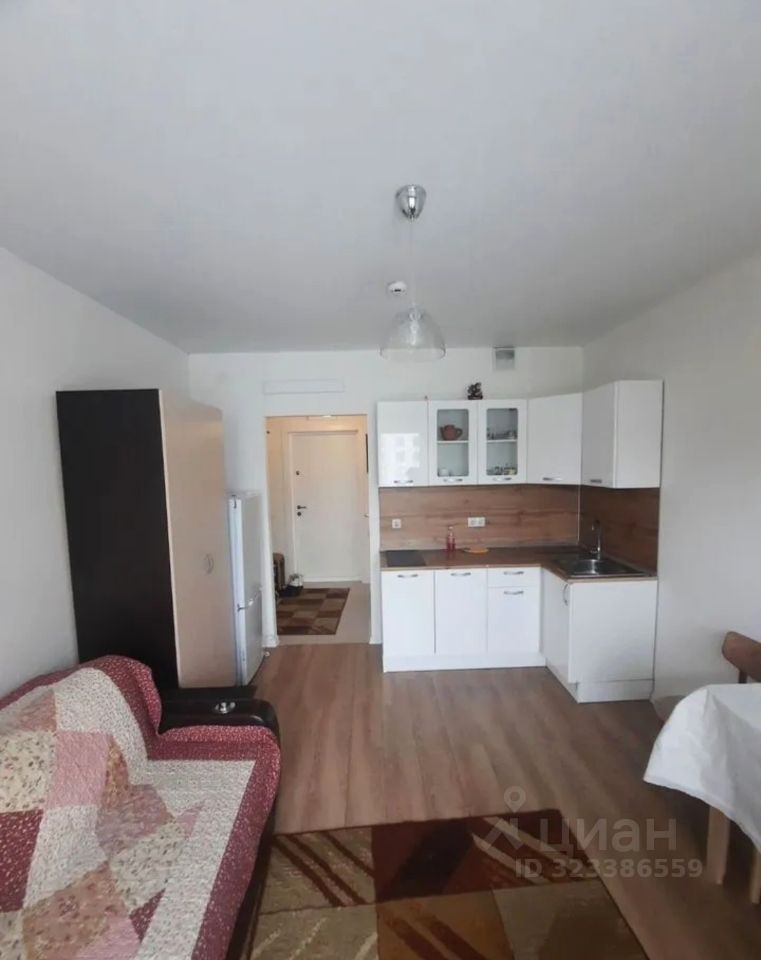 Студия готова к проживанию, имеется вся необходимая мебель и техника.
