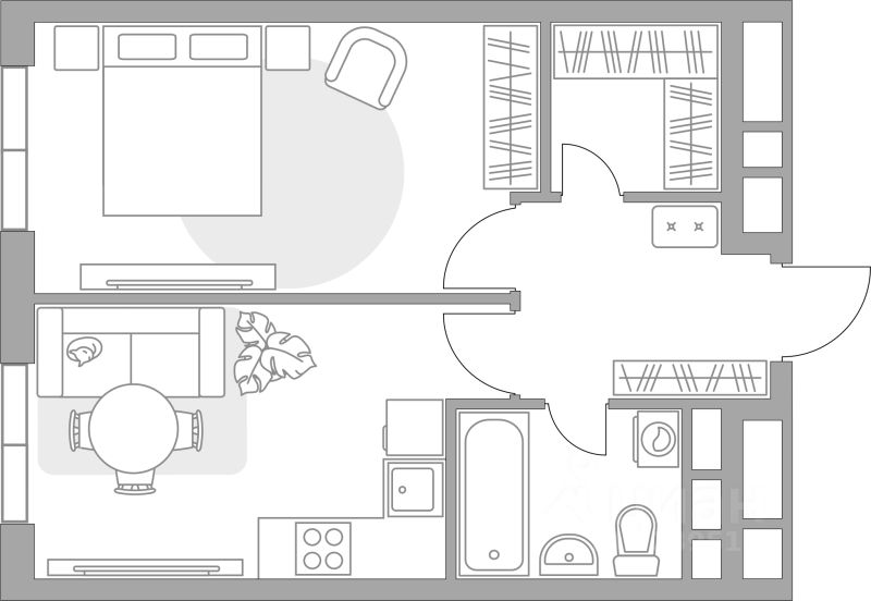 Продаётся 1-комнатная квартира в строящемся доме (Секция 7), срок сдачи: III-кв. 2028, общей площадью 39.64 кв.м., на 12 этаже.