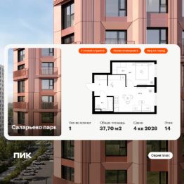 Продаётся 1-комн. квартира площадью 37,7 кв.м на 14 этаже 24 этажного дома (Корпус 82.7, Секция 7) проекта ПИК Саларьево парк. Светлый просторный подъезд на уровне земли, функциональная планировка, большие окна, c отделкой.