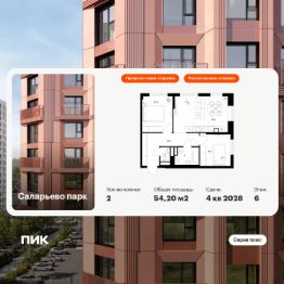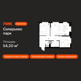 Продаётся 2-комн. квартира площадью 54,2 кв.м на 6 этаже 16 этажного дома (Корпус 82.5, Секция 5) проекта ПИК Саларьево парк. Светлый просторный подъезд на уровне земли, функциональная планировка, большие окна, предчистовая отделка.