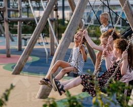 Все корпуса в квартале гармонично сочетаются, образуя единую городскую среду. Между собой их объединяет невысокая этажность и натуральная цветовая гамма. Здесь приятно гулять и проводить время на улице всей семьёй.