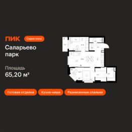 Продаётся 2-комн. квартира площадью 65,2 кв.м на 11 этаже 16 этажного дома (Корпус 82.2, Секция 2) проекта ПИК Саларьево парк. Светлый просторный подъезд на уровне земли, функциональная планировка, большие окна, c отделкой.