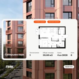 Продаётся 1-комн. квартира площадью 39,6 кв.м на 6 этаже 16 этажного дома (Корпус 82.2, Секция 2) проекта ПИК Саларьево парк. Светлый просторный подъезд на уровне земли, функциональная планировка, большие окна, c отделкой.